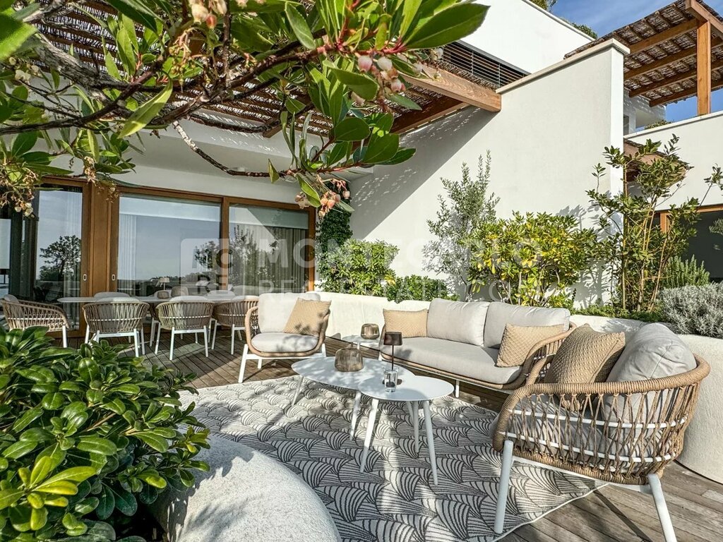L'appartement dispose d'une terrasse spacieuse de 53 m² qui offre une vue panoramique imprenable sur la mer.