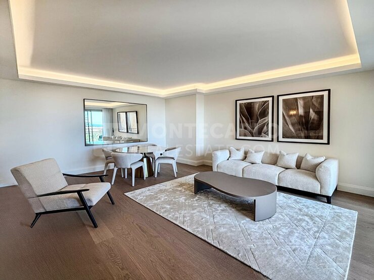 Situé dans la résidence prisée du Roqueville, au cœur du Carré d’Or, cet élégant appartement 3 pièces offre un cadre de vie rare et recherché, à seulement 5 minutes à pied de la Place du Casino. Traversant, lumineux et entièrement rénové, il bénéficie d’un emplacement privilégié, dans une résidence calme avec jardins paysagers et service de conciergerie, tout en étant à proximité immédiate des boutiques de luxe et des restaurants emblématiques de Monaco. L’intégralité de l’appartement a été rénové avec des matériaux nobles et des prestations de qualité. Les sols sont revêtus de parquet en bois massif, apportant chaleur et élégance à chaque pièce. Les deux salles de douche ont été habillées de marbre, soulignant le soin apporté aux détails et au confort. La cuisine sur-mesure, ouverte sur le séjour, est entièrement équipée avec de l’électroménager Miele, garantissant performance et design. De nombreux rangements intégrés ont été pensés dans chaque espace pour allier esthétisme et fonctionnalité. Le mobilier, sélectionné avec goût, complète l’ensemble avec une décoration contemporaine et raffinée. Ce bien représente une opportunité rare d’acquérir une résidence clé en main dans l’un des quartiers les plus recherchés de la Principauté.