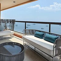 L'appartement se compose d'un hall d'entrée, un spacieux séjour avec une profonde terrasse proposant une pleine vue mer, une cuisine équipée disposant d'un coin repas, deux chambres et deux salles de bains.