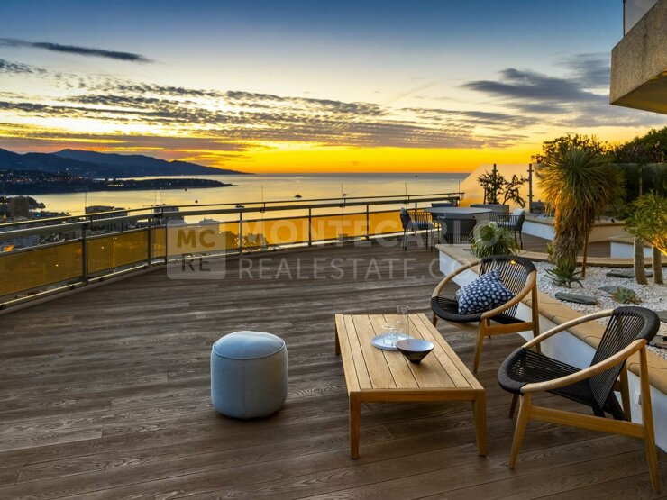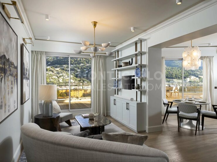 Bienvenue dans cet époustouflant appartement de 3/4 pièces, entièrement meublé et équipé avec des matériaux de la plus haute qualité - un véritable chef-d'œuvre d'architecture et de design. L'immeuble « Les Ligures » vous offre un service de conciergerie exclusif 24h/24 et 7j/7, une piscine extérieure, de vastes jardins et un court de tennis. Chaque détail de cet appartement a été conçu avec le plus grand soin par une architecte d'intérieur de renom et rénové avec amour à l'aide des meilleurs matériaux. L'entrée vous accueille avec élégance et vous conduit directement dans le vaste salon, qui se fond harmonieusement avec un espace de travail élégant et une cuisine ouverte moderne. Cette vaste configuration de l'espace crée une atmosphère chaleureuse et accueillante, parfaite pour les soirées conviviales comme pour les moments de détente au calme. L'appartement dispose de deux chambres à coucher exquises qui assurent une intimité confortable. Les deux chambres disposent de leur propre salle de bains et d'un dressing. Le véritable point fort de cette propriété est la terrasse spectaculaire qui vous offre une vue panoramique incomparable sur le glamour de Monaco. Vous pourrez y terminer la journée en dégustant un verre de vin ou en admirant la vue sur la mer et la ville - tout simplement magique ! Cet appartement vous offre un lieu de retraite unique à Monaco. Un véritable bijou à ne pas manquer ! Une place de parking et deux caves font partie de cet appartement.