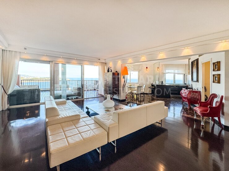 Superbe appartement de 4/5 pièces, idéal pour une famille, situé au sein d'une résidence de standing, dotée d'un service de conciergerie disponible 24h/24 et propose des équipements exceptionnels, notamment une piscine privée réservée aux résidents. Ce cadre de vie privilégié assure sécurité et tranquillité dans un environnement chic et raffiné. Situé en étage élevé, cet appartement bénéficie d'une vue imprenable sur la mer grâce à une magnifique terrasse, offrant un panoramas à couper le souffle tout au long de la journée. Récemment rénové avec des matériaux nobles, ce bien spacieux et lumineux allie élégance et confort. L'appartement propose un agencement idéal, comprenant un vaste double séjour, une cuisine équipée, des chambres spacieuses et un bureau discret et fonctionnel. Ne manquez pas cette occasion rare d'acquérir un bien d'exception, alliant confort, prestige et vue panoramique sur la mer. Ce bien est proposé à la vente avec 2 parkings et 1 cave.