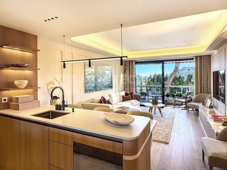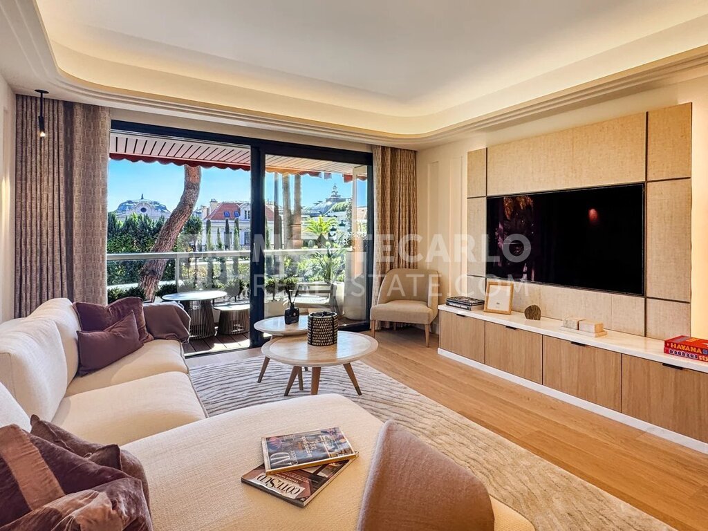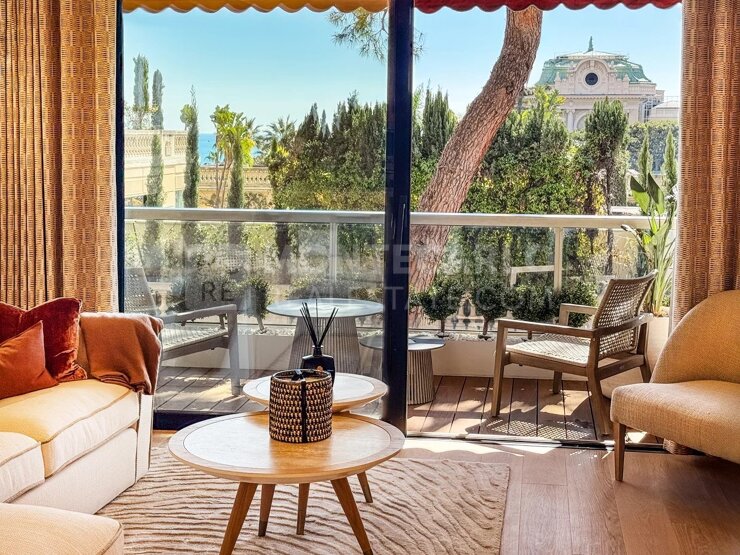 Cette magnifique 3 pièces est située dans la résidence très recherchée "Les Floralies". L'emplacement de ce bien est exceptionnel, puisqu'il se trouve au cœur du Carré d'Or. L'appartement a fait l'objet d'une rénovation de grand luxe. Il a été décoré par un architecte d'intérieur de renom afin de le transformer en un bien clé en main, unique et hautement exclusif. En entrant, vous découvrirez un élégant hall d'entrée qui donne sur un salon luxueux, avec une cuisine américaine Bulthaup. Le salon s'ouvre sur une terrasse paysagée offrant une vue sur la place du Casino. Le mobilier raffiné est complété par de magnifiques boiseries sur mesure. Les deux chambres sont spacieuses et lumineuses, avec un parquet en chêne clair créant une atmosphère chaleureuse, ainsi que des placards sur mesure. Les salles de bains présentent des finitions en marbre et un chauffage au sol pour un confort optimal.