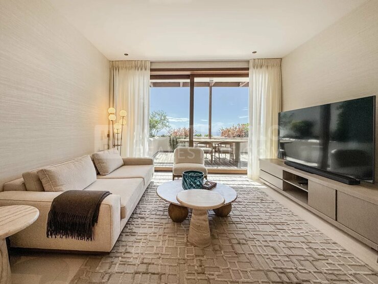 L'appartement est divisé comme suit : Un hall d'entrée, une cuisine entièrement équipée avec accès au salon et à la salle à manger. Une vaste terrasse de 70 m²,