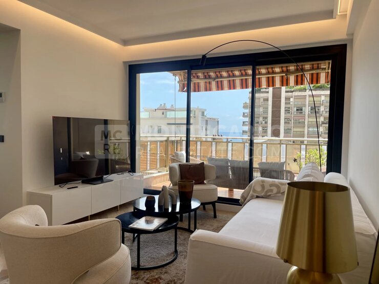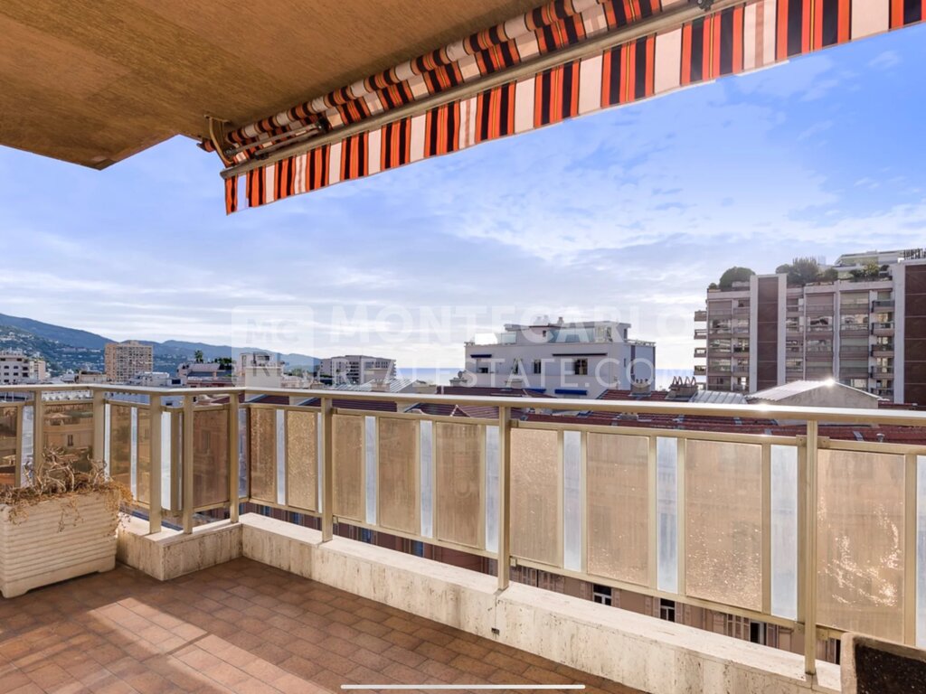 Situé dans l'immeuble du Buckingham Palace, offrant un service de conciergerie et une position idéale à proximité de nombreux restaurants et boutiques. Cet appartement de 132 m2 situé en étage élevé offre une belle vue sur les toits de la principauté et une échappée mer. Il a été totalement restructuré et rénové, il comprend un beau séjour, une cuisine entièrement équipée ouvrant sur une terrasse, une grande chambre disposant de nombreux espaces de rangement, avec sa salle de douche, une deuxième chambre, avec une spacieuse salle de douche avec WC et des toilettes invités.