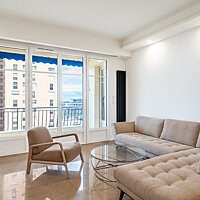 L'appartement dispose d’une vue mer spectaculaire, s'étendant de la Pointe de Cap Martin à gauche jusqu’au Musée Océanographique à droite.