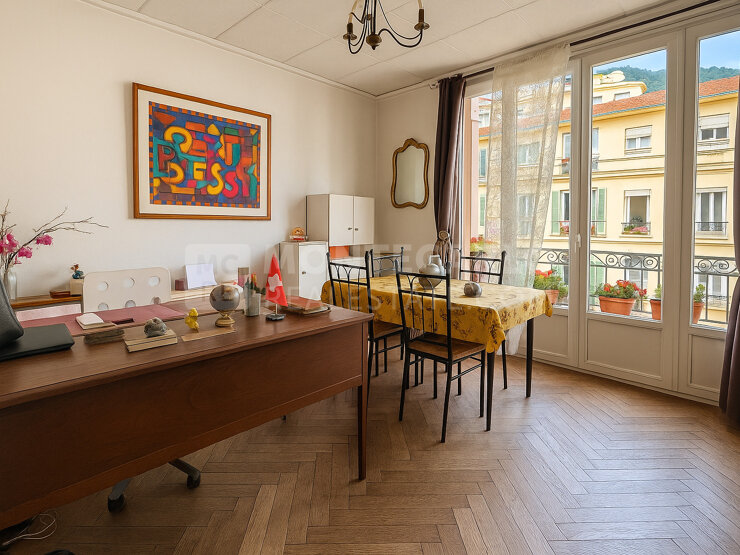 Cet appartement de trois pièces principales offre un agencement fonctionnel et un beau potentiel de rénovation. Dès l’entrée, un large couloir distribue les différentes pièces : sur la droite, deux chambres lumineuses s’ouvrent sur un premier balcon. Dans la continuité, la cuisine indépendante, la buanderie et la salle de bain bénéficient d’un second balcon, apportant un agréable espace extérieur supplémentaire. Le salon, situé en bout de couloir, complète harmonieusement l’ensemble.