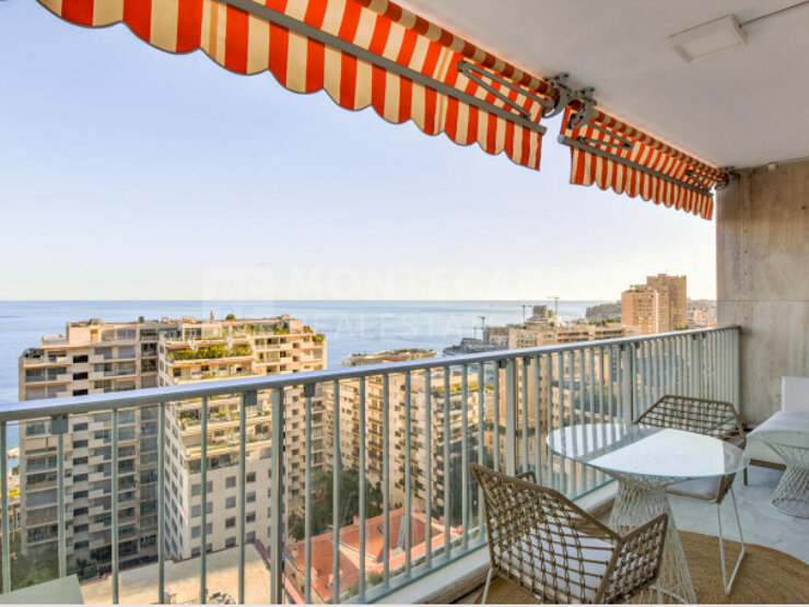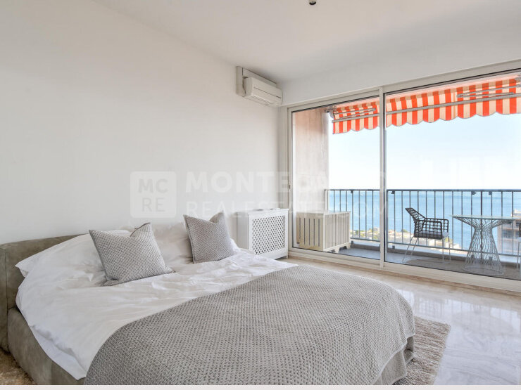 Bel appartement de deux pièces offrant une magnifique vue sur la mer. Situé dans une résidence de prestige, à deux pas de la plage, du centre de Monaco et à quelques minutes du Country Club, ce bien représente un emplacement idéal alliant confort et proximité des commodités.