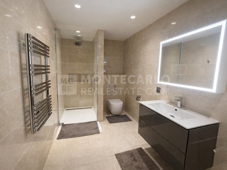 Studio neuf avec des finitions luxueuses et une cuisine entièrement équipée dans une résidence moderne en plein coeur de la Condamine, proche de toutes comodités (commerces, restaurants et transports).