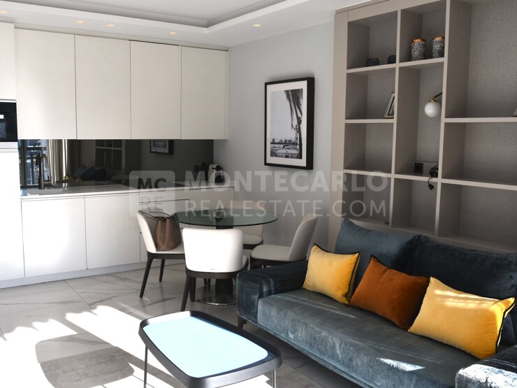 Magnifique deux-pièces à la vente dans une résidence de standing au Millefiori, à deux pas du Casino. L’appartement, rénové avec goût, offre une belle vue sur la mer.