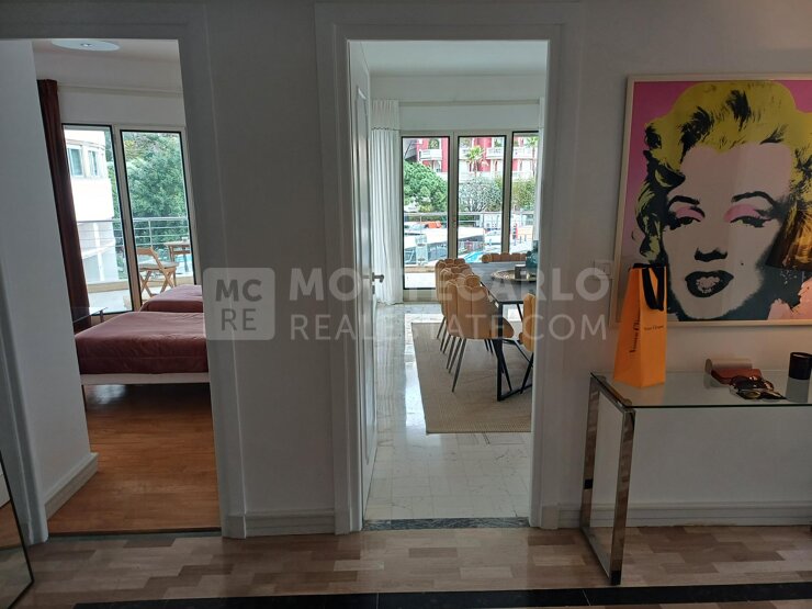 Situé au 2e étage de l'Ermanno Palace, cet appartement bénéficie d'une vue directe sur le circuit du Grand Prix de Monaco, offrant un emplacement privilégié pendant l'événement le plus emblématique de la Principauté.