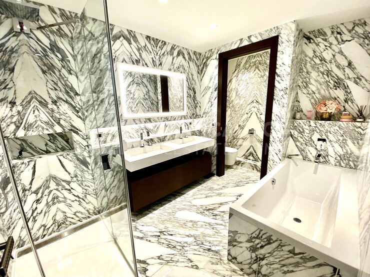 NOUVEL APPARTEMENT DANS UNE RÉSIDENCE DE HAUT RANG AVEC 3 GRANDES CHAMBRES AVEC SALLE DE BAIN, UNE CUISINE/SALON À AIRE OUVERTE QUI S’OUVRE SUR UNE TERRASSE AVEC UNE VUE PITTORESQUE.