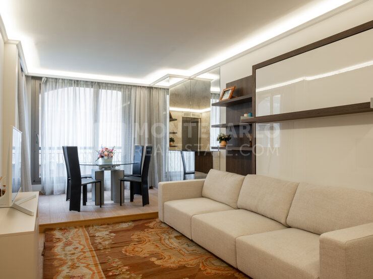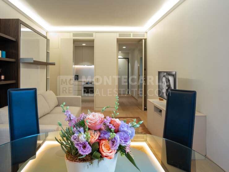 Ce charmant et spacieux studio est situé au cœur d'un environnement calme, dans un petit immeuble de la marina de Fontvieille. Il est en parfait état, luxueusement meublé. Il comprend une entrée avec placard de rangement, une salle de douche avec espace buanderie, une cuisine équipée, un spacieux séjour et salle à manger. Possibilité parking dans l'immeuble - 350.000 €