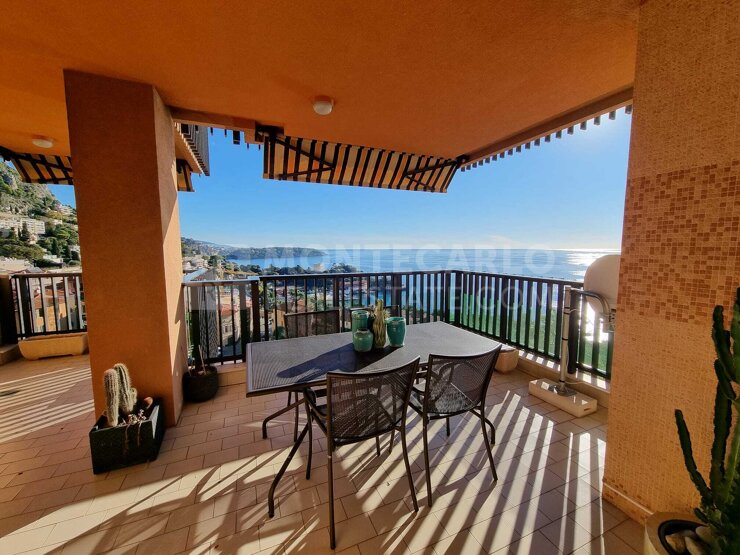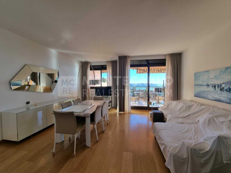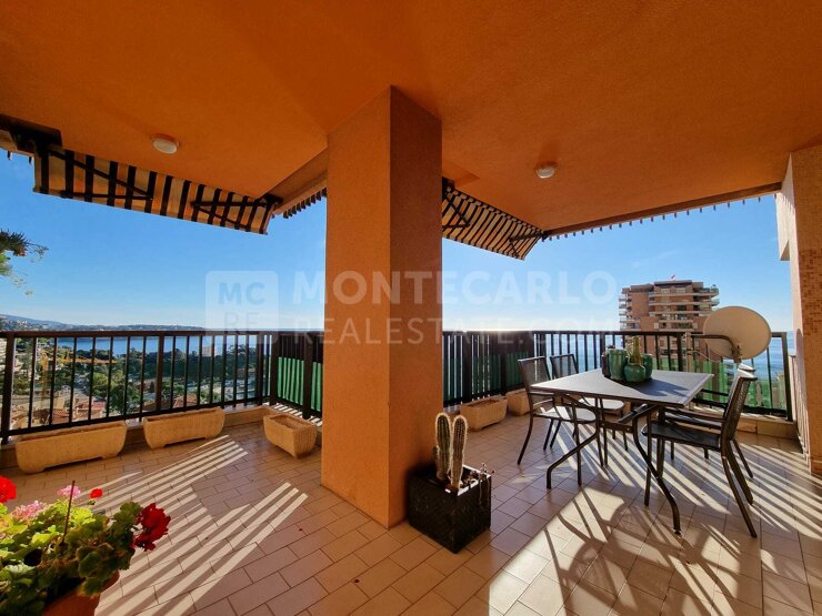 A quelques pas du Prestigieux Monte-Carlo Tennis Country Club- Cet appartement de 3pièces principales est situé dans une luxueuse résidence avec piscine, pool house, sauna et service de sécurité assuré 24h/24. L'appartement en très bon état offre une belle vue sur la mer et le Cap Martin. Il bénéficie d'un ensoleillement optimal et dispose de la climatisation. L'appartement se compose d'un hall d'entrée avec une toilette invitées, un grand séjour se prolongeant naturellement sur l'agréable terrasse avec vue mer, une cuisine équipée avec passe-plats, une chambre de maître avec penderie et salle de bains en suite, une 2nde chambre acec placard, une salle de douche complète. Loué avec une cave et un emplacement parking DISPONIBILITE 01.02.2026