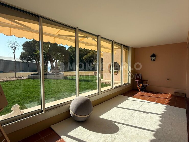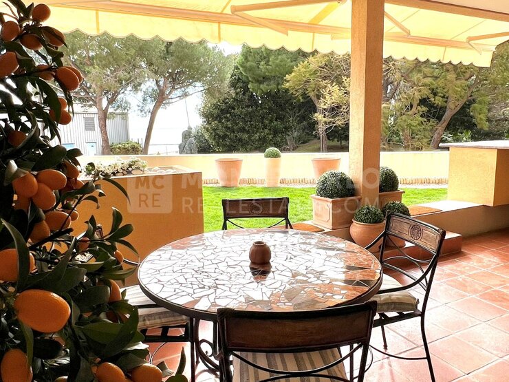 Ce spacieux appartement comprend une hall d'entrée avec vestiaire et toilettes invités, un lumineux séjour/salle à manger et grande cuisine ouverte entièrement équipée, 3 chambres avec chacune une salle de bains ou douche ensuite, de nombreux rangements, de larges terrasses et jardin privatif. Loué avec une cave et un emplacement parking Disponible immédiatement La résidence est située dans le quariter , dans un complexe disposant d'une piscine et d'un service de sécurité. Ce quatier offre des jardins, la roseraie Princesse Grace, une garderie et de nombreux restaurants et transports à proximité.