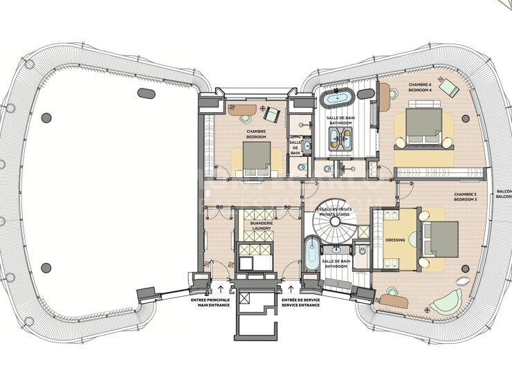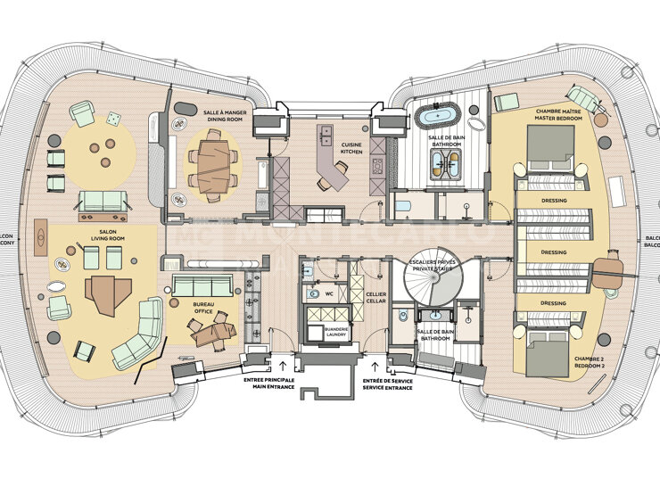 Cet appartement de prestige situé à quelques pas de l'Hôtel de Paris dans le nouveau One Monte Carlo. Imaginé par l'agence Rogers Stirk Harbour and Partners, cette résidence exclusive a été entièrement conçue avec un style luxueux, pur et moderne. Les prestations et services inclus: l'accès à la salle de fitness et à la piscine au Thermes Marins et service de voiturier. Les services optionnelles comprennent le service de chambre, le service ménage et blanchisserie.