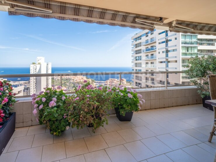 Quartier du Jardin Exotique, immeuble de standing avec piscine et service de conciergerie 24h00/24h00, grand appartement de 3-4 PIECES principales, vue mer, en excellent état
