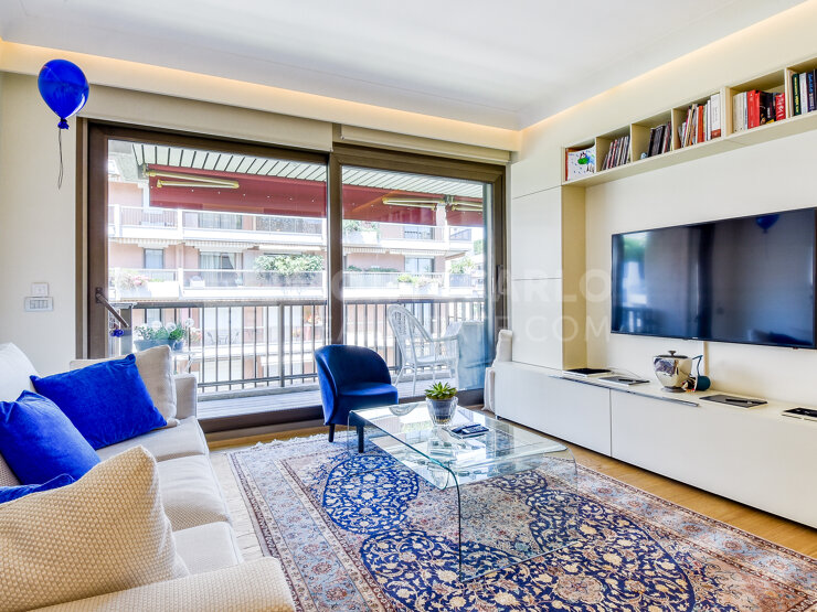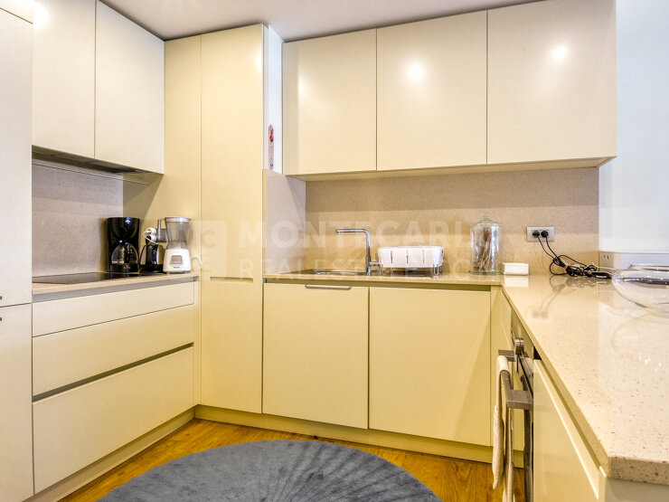 Situé dans le prestigieux Carré d'Or, à deux pas de l'Hôtel Métropole et de la célèbre Place du Casino de Monte-Carlo, ce magnifique appartement 2/3 pièces est agencé de manière élégante et fonctionnelle. À l'entrée, vous trouverez une cuisine entièrement équipée, comprenant une réserve à vins, ouverte sur une lumineuse salle à manger et un confortable salon, agrémenté d'un canapé devant la télévision et d'une bibliothèque. À côté de l'espace de vie se trouve la chambre principale, tandis qu'une grande terrasse offre un espace extérieur pour se détendre et profiter de la vue. Une salle de bains et une chambre d'enfant ou bureau, équipée de domotique et d'un lit, complètent cette résidence de luxe. Le tout est accompagné d'un pratique parking dans l'immeuble.