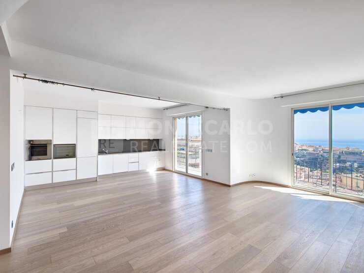 Rare penthouse de 4 pièces avec toit terrasse offrant une magnifique vue mer et Palais Princier situé dans un immeuble bourgeois. L'appartement est refait à neuf.
