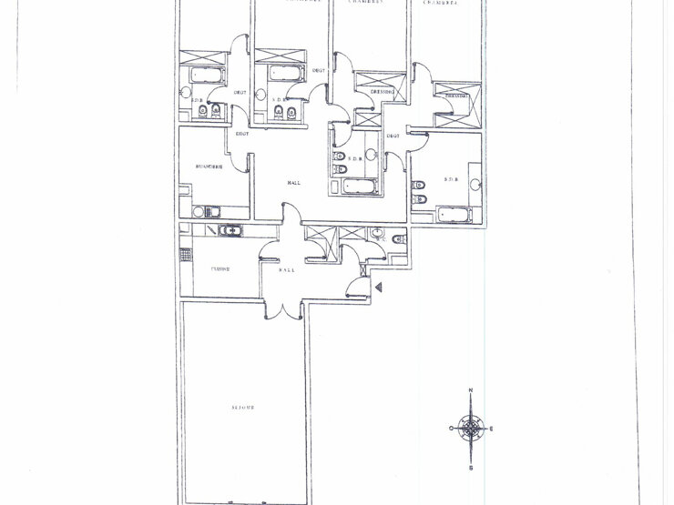La partie nuit, bien séparée, s’organise autour d’un généreux hall de distribution desservant une spacieuse buanderie et quatre chambres. Deux d’entre elles disposent d’un dressing, tandis que les deux autres sont dotées de placards. Chaque chambre bénéficie de sa propre salle de bains et d’un accès à une loggia.