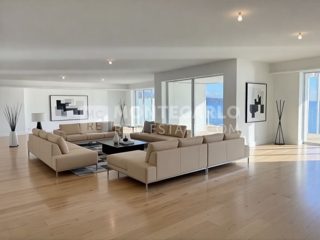 L'appartement d'angle et traversant baigné de lumière face à la mer, bénéficiant de la meilleure position, s'ouvre sur de vastes terrasses proposant une vue à 360°.