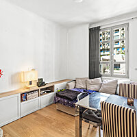 Dans un immeuble avec concierge, proche commerces et commodités, à deux pas du marché de la Condamine, très beau studio composé d'un hall d'entrée, pièce principale avec cuisine équipée ouverte, salle de bains complète, placards. Climatisation. Belle loggia.