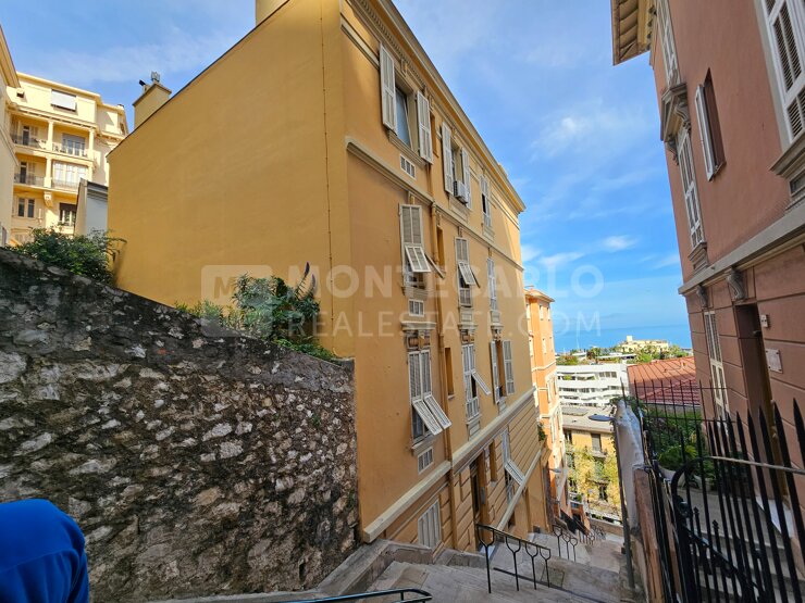 Situé escaliers du Castelleretto, avec un accès par marches, au 2ème étage sans ascenseur, beau bourgeois soumis à la loi 1291, composé d'un hall d'entrée, cuisine équipée, toilette invités, dégagement avec placards, 2 chambres, salle de douche, séjour, balcon.