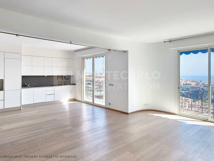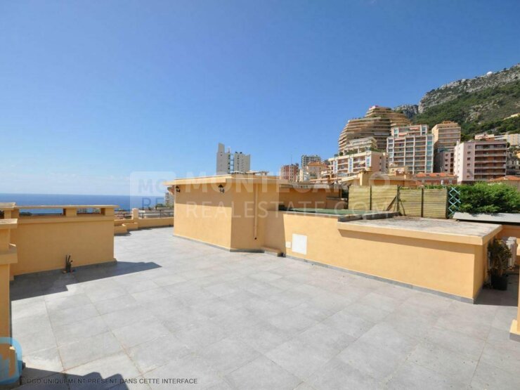 Ce bien d'exception offre une réelle vue de carte postale sur la Principauté. Penthouse rénové avec grands volumes et large espace extérieur sur le toit.