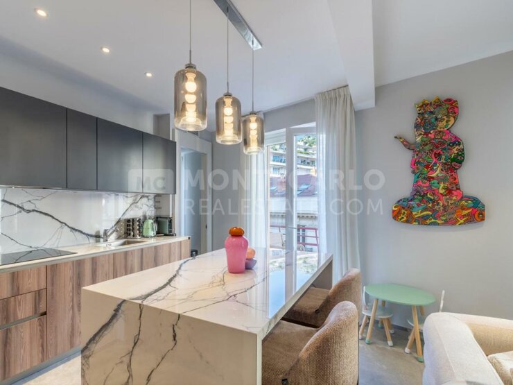 Entièrement rénové avec des matériaux nobles et des finitions haut de gamme, ce bien d’exception offre une belle entrée, un vaste séjour baigné de lumière ouvert sur une élégante cuisine américaine contemporaine, trois chambres, chacune avec sa salle de bains privative, ainsi qu’une terrasse filante.