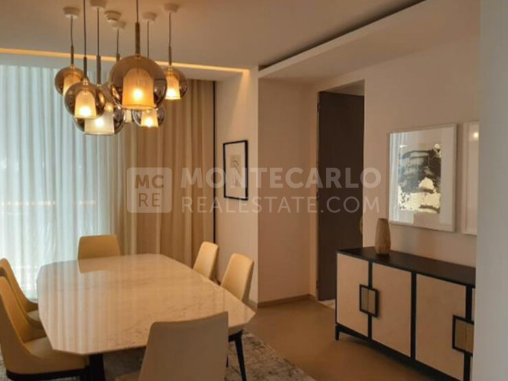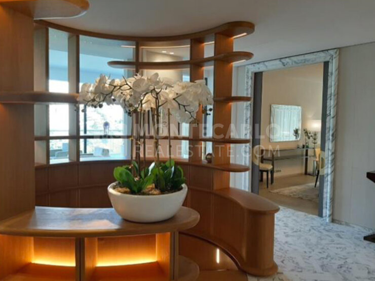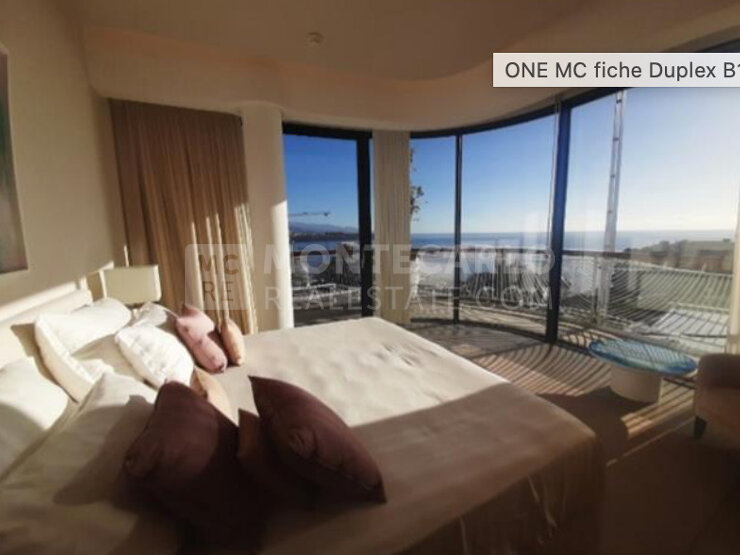 Ce magnifique duplex situé dans le bâtiment B offre 410 m² habitables, avec des balcons entourant l’appartement et offrant de superbes vues sur le Rocher et la mer.