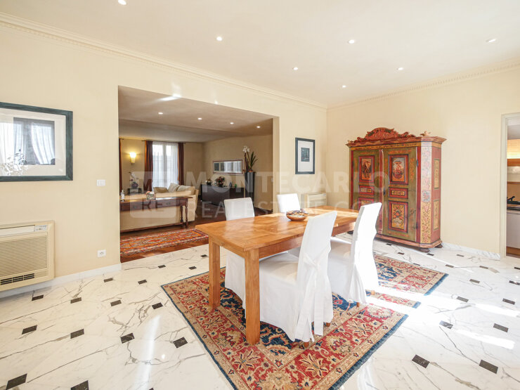 Ce triplex de 4 pièces principales est en parfait état et décoré dans un style "Florentin", avec des matériaux de très bonne qualité dont du bois noble au sol, du double vitrage et l'air conditionné. L'appartement bénéficie d'une très jolie vue dégagée sur les toits du rocher et le Palais, la ville et d'un aperçu mer. Il se compose au premier niveau d'un grand séjour, d'une salle à manger, d'une cuisine indépendante et entièrement équipée. Le second niveau accessible par deux escaliers se compose d'une chambre de maître avec salle de douche, dressing et balcon, d'une chambre avec salle de douche et balcon, d'un bureau avec balcon et d'un toilette invités avec balcon. Le dernier niveau toujours accessible par un escalier, est un toit-terrasse de 15 m² bénéficiant d'un ensoleillement optimal tout au long de la journée. Cet espace est idéale pour se détendre et profiter de somptueux couché de soleil en fin de journée.
