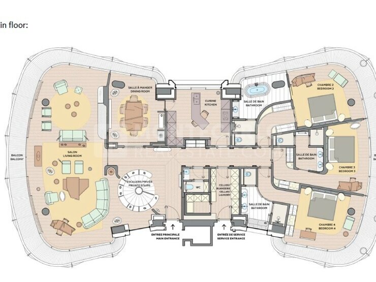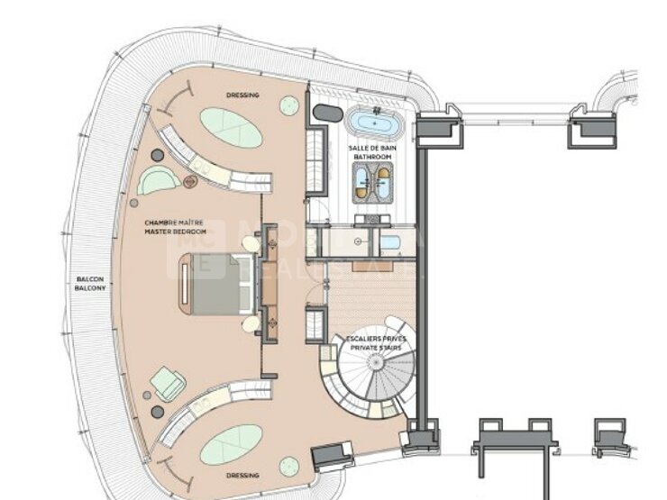 Une adresse incontournable au cœur du Carré d'Or de la Principauté, appartement exclusif de 4 chambres en duplex aux finitions luxueuses, composé de :