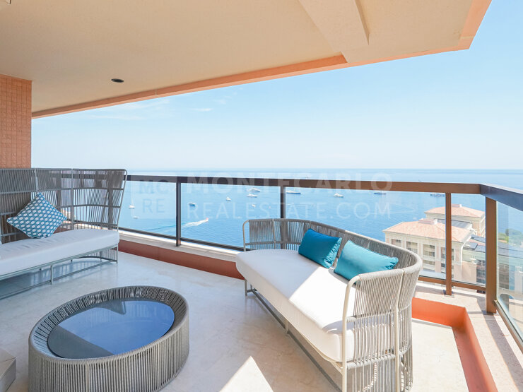 Ce magnifique 3/4 pièces a été entièrement rénové avec des matériaux de qualité. Très lumineux grâce à sa double exposition Sud/Ouest, sa position en étage élevé offre une vue panoramique sur la Mer Méditerranée et Monaco. Il se compose d'une entrée, d'un séjour, d'un bureau indépendant et d'une cuisine, avec accès à une terrasse côté mer. Du côté Ouest, face à Monaco, 2 chambres avec salles de bains attenantes et rangements. Un toilette invités. l'appartement est à usage mixte.