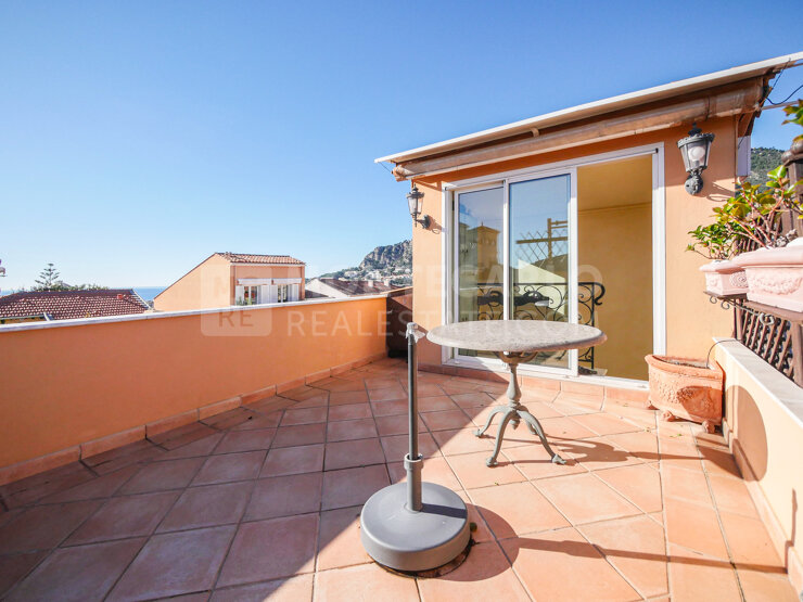 Ce triplex de 4 pièces principales est en parfait état et décoré dans un style "Florentin", avec des matériaux de très bonne qualité dont du bois noble au sol, du double vitrage et l'air conditionné. L'appartement bénéficie d'une très jolie vue dégagée sur les toits du rocher et le Palais, la ville et d'un aperçu mer. Il se compose au premier niveau d'un grand séjour, d'une salle à manger, d'une cuisine indépendante et entièrement équipée. Le second niveau accessible par deux escaliers se compose d'une chambre de maître avec salle de douche, dressing et balcon, d'une chambre avec salle de douche et balcon, d'un bureau avec balcon et d'un toilette invités avec balcon. Le dernier niveau toujours accessible par un escalier, est un toit-terrasse de 15 m² bénéficiant d'un ensoleillement optimal tout au long de la journée. Cet espace est idéale pour se détendre et profiter de somptueux couché de soleil en fin de journée.