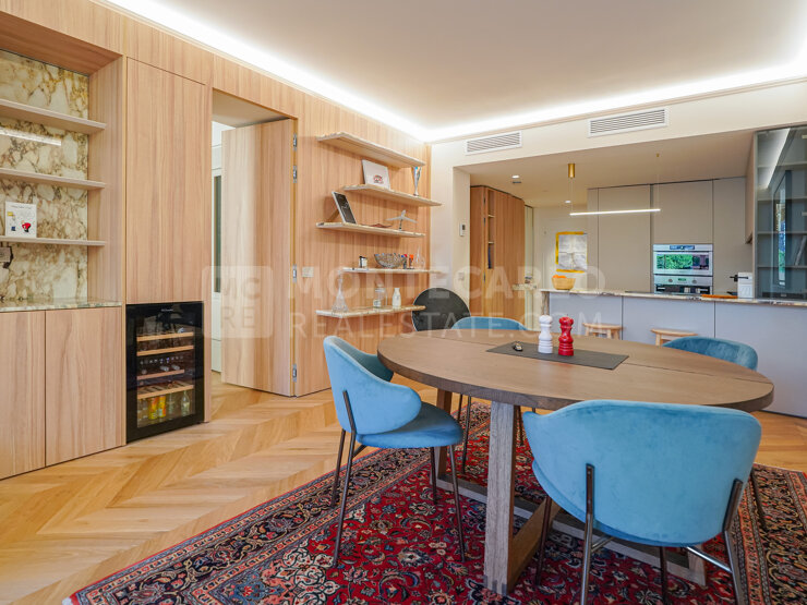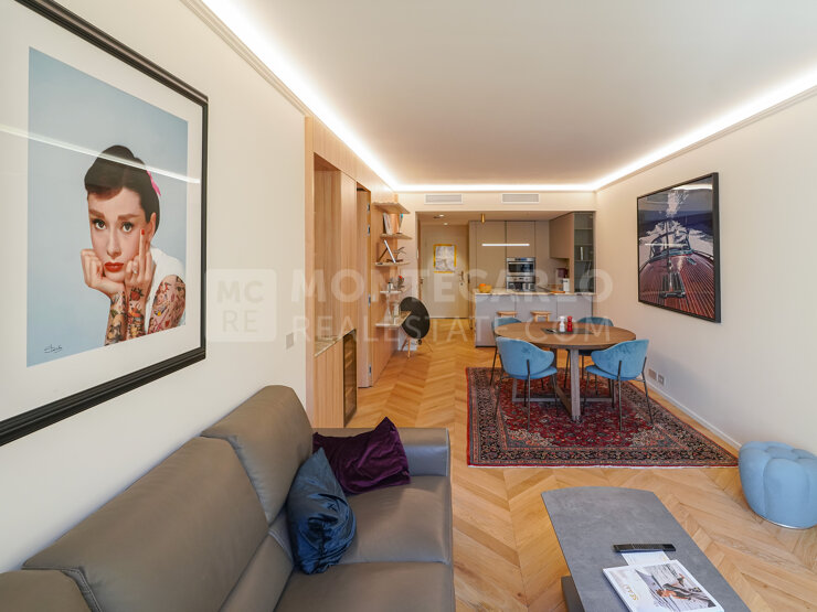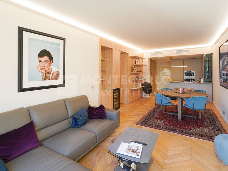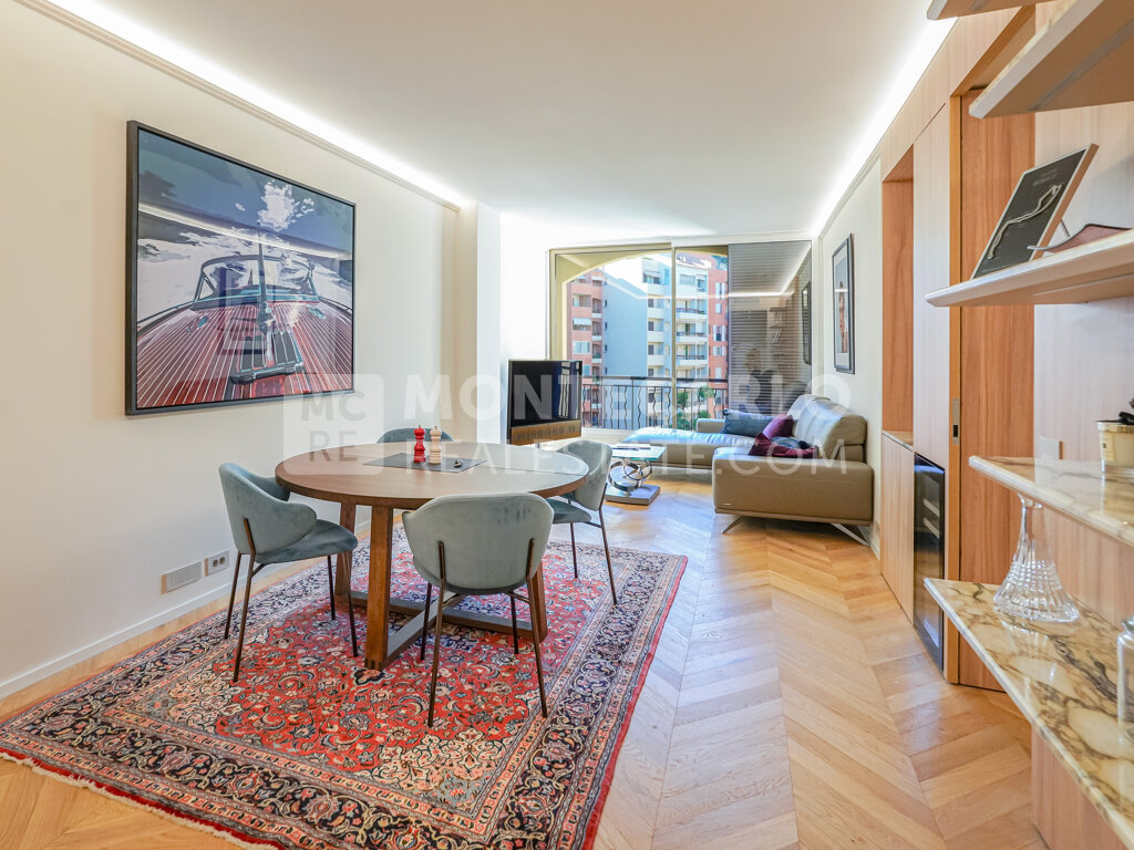 Très bel appartement entièrement rénové dans un style contemporain situé dans une résidence sur la marina de Fontvieille. Parking et cave. Idéal en pied-à-terre.