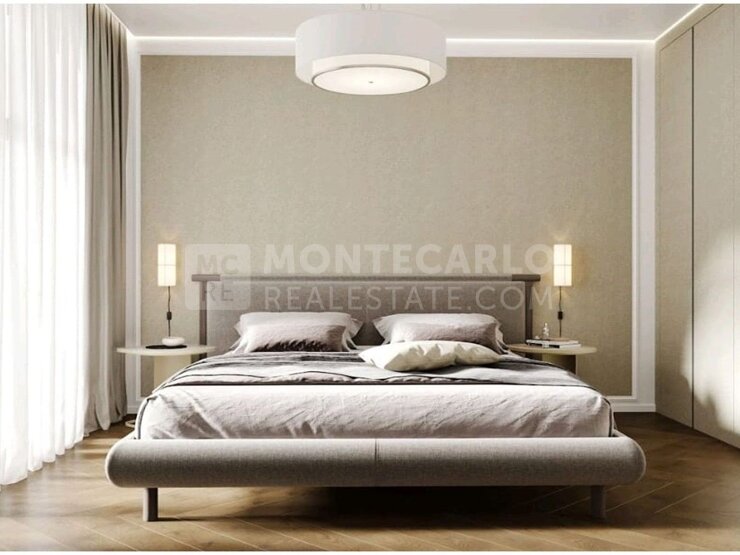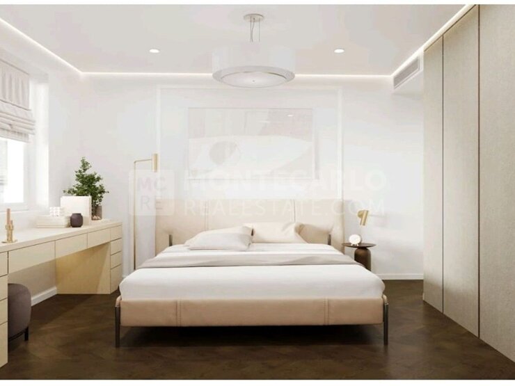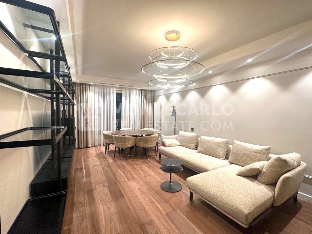 Élégant trois pièces dans le quartier de Monte Carlo, récemment rénové et meublé avec raffinement, dans un style contemporain.