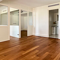 Ce très bel appartement se compose d'une entrée avec toilet invité, d'un grand séjour avec cuisine américaine, une chambre ensuite avec salle de douche et une salle de bain desservant deux chambres dont une de très belle taille avec un petit balcon et une autre plus petite pouvant servir de petite chambre, de bureau, ou de dressing.