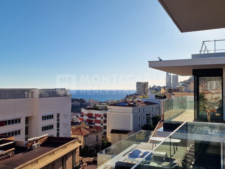 Ce magnifique penthouse de 156 m², situé au 7e et dernier étage d’une nouvelle résidence à Beausoleil se trouvant seulement à 5 mn a pieds du carré d'or de Monaco , celui ci vous offre une vaste terrasse de 58 m² avec une petite piscine, vous permettant de profiter pleinement de la vue dégagée sur l’horizon et la mer.