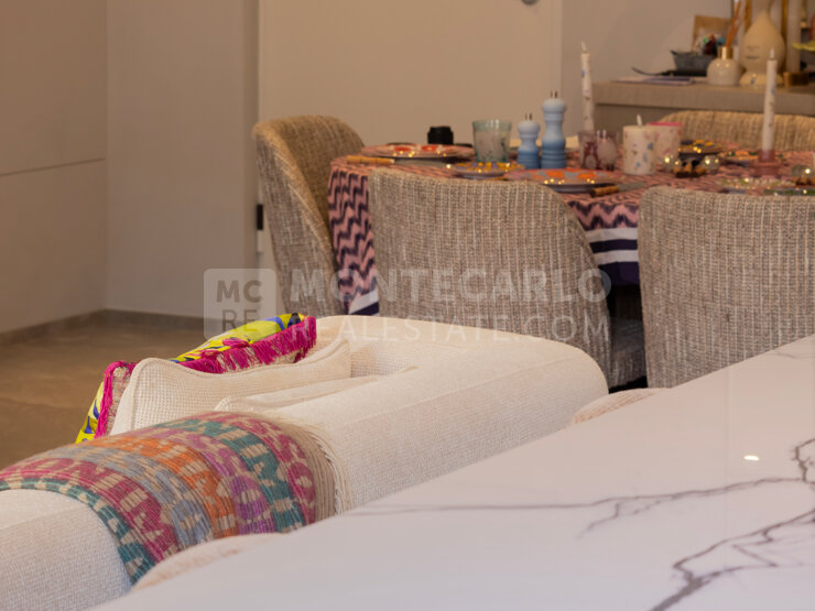 Composé par un vaste séjour avec une cuisine américaine élégante et conviviale donnant sur une belle terrasse, ainsi que trois chambres avec salles de bains privatives, WC invites.
