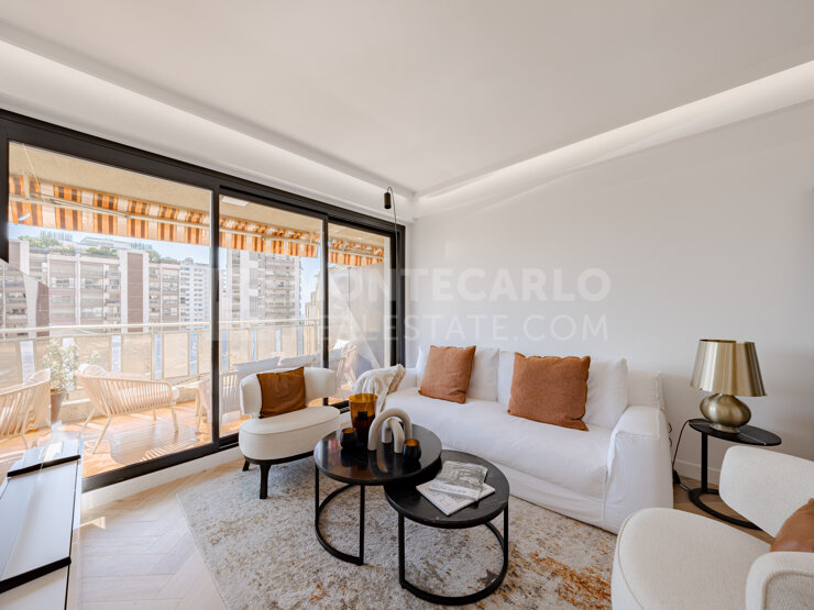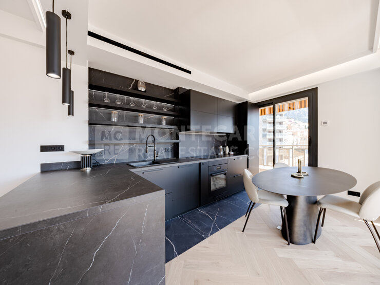 Situé dans un immeuble de standing, à quelques pas du Carré d’Or et de la place du Casino, cet appartement entièrement rénové avec des matériaux haut de gamme allie confort et raffinement.