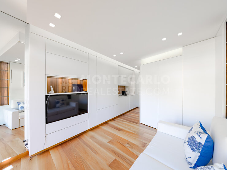 Dans une résidence de standing avec service de conciergerie disponible 24h/24, idéalement située à proximité des plages du Larvotto et à seulement quelques minutes du Casino. Un lieu parfait pour un pied-à-terre à Monaco.