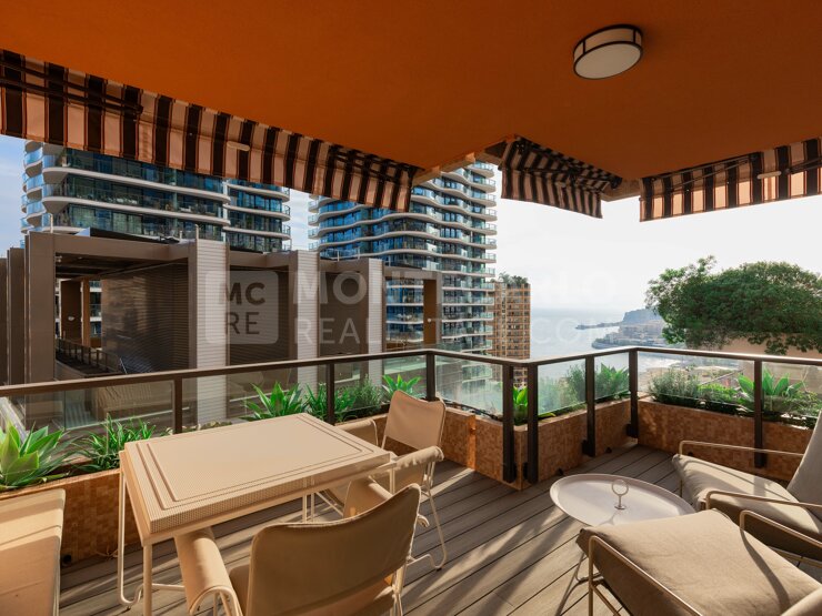 Conçu dans l’esprit des suites des palaces 5 étoiles, situé dans la section terrasse, particulièrement prisée au sein de la résidence, cet appartement raffiné se distingue par l’utilisation de matériaux de prestige et un soin extrême apporté à chaque détail.