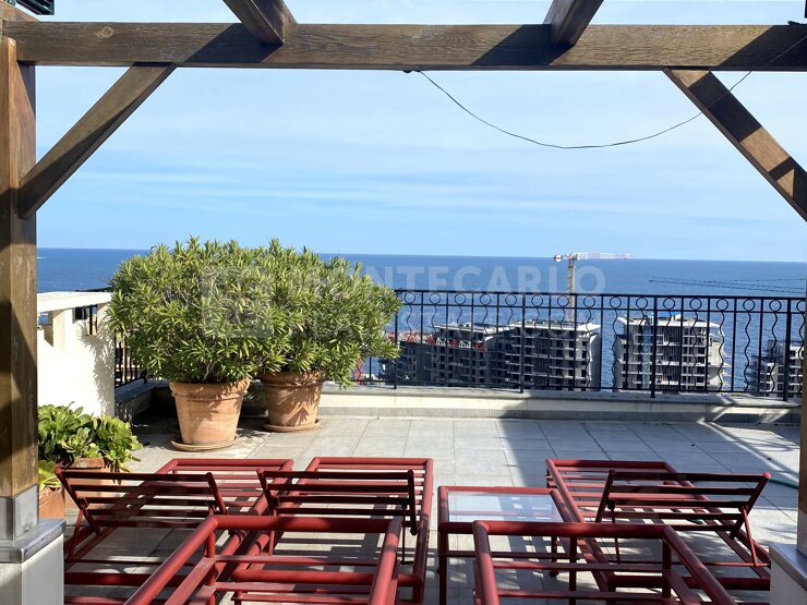 Situé dans le Carré d'Or et à proximité de tous les commerces, superbe penthouse en duplex avec magnifique vue mer panoramique et sur l'extension Mareterra. Un panorama à couper le souffle.