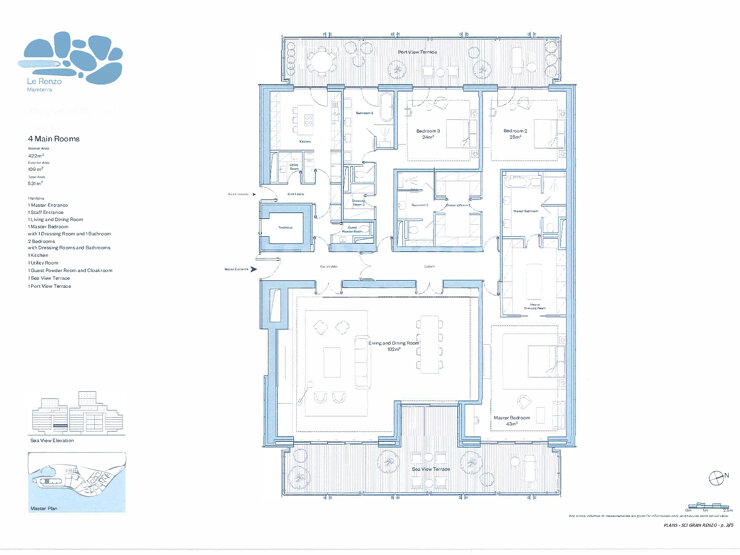 Située à l 'extrême ouest de Mare Terra , un éco- quartier novateur en bord de mer, la résidence L e Renzo surplombe le petit port de plaisance du Petit Portier et offre un accès direct à l a promenade côtière menant à la plage du Larvotto.