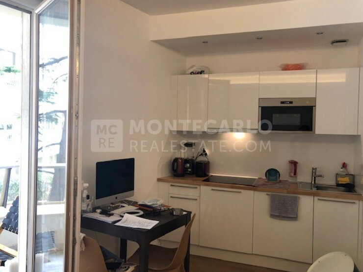 Quartier calme Jardin Exotique, résidence Bel Horizon, studio avec balcon climatisé et service conciergerie.