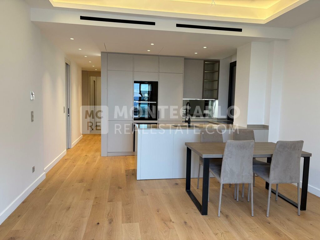 Beau 3 pièces rénové composé d'une entrée, d'un séjour avec cuisine entièrement équipée ouvrant sur un balcon surplombant le boulevard de Suisse et offrant une très belle vue sur la ville, le port de Monaco et le Rocher; 2 chambres avec placards, dont une parentale avec salle de douche. Une salle de douche avec toilette et un toilette invités.