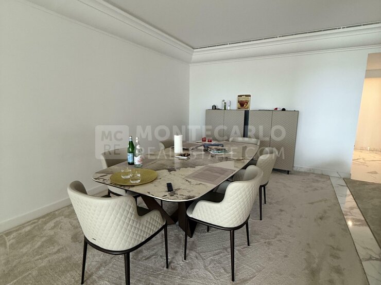 Ce magnifique appartement de 3-4 chambres est situé dans la luxueuse résidence des Terrasses du Port, l'une des plus prestigieuses de Fontvieille. L'immeuble dispose d'une grande piscine, un service de conciergerie 24h/24 et 7j/7. À l'origine composé de deux appartements, il a fait l'objet d'une reunification et bénéficie d'une belle vue sur le port de Cap d'Ail. L'appartement est composé d'un hall d'entrée, un vaste séjour donnant sur une belle et profonde terrasse avec cuisine d'été, ainsi qu'une cuisine équipée d'appareils et de matériaux haut de gamme, de trois chambres dont une suite parentale de 80 m² bénéficie d'une spacieuse salle de bain privative, d'un dressing et d'un accès à la terrasse.