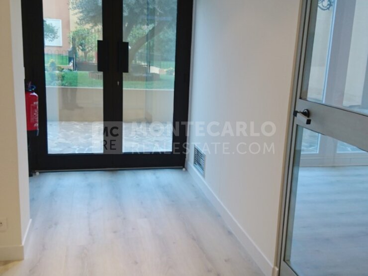 Dans le quartier du port de Fontvieille, ce grand bureau de 63m2 donnant sur les jardins de la résidence est un idéal espace de travail au calme