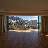 Dans un quartier résidentiel et calme, mais à quelques minutes à pieds du centre-ville, des services, de la gare, des restaurants et de toutes les commodités; de plus, grâce aux ascenseurs adjacents à la propriété, il est possible de rejoindre rapidement le Port Hercule et le quartier de la Condamine.