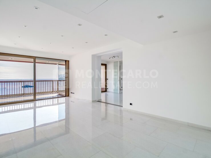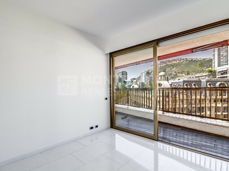 Dans un des immeubles les plus recherchés de Monaco, Le Mirabeau, cet appartement en étage élevé bénéficie d’une superbe vue mer et sur le nouveau quartier du front de mer "MARETERRA". Rare bien dans la résidence à disposer de trois chambres et trois salles de bain, la chambre de maitre possède un accès direct au balcon surplombant la mer.