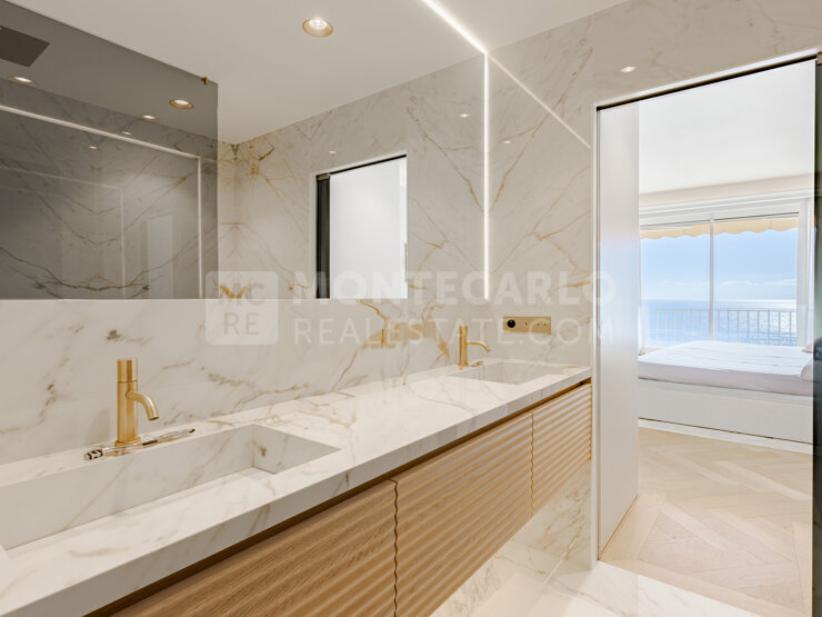 Situé au 9ᵉ étage de la résidence Les Abeilles, cet élégant appartement de 3 pièces a été entièrement rénové récemment avec des matériaux de haute qualité. Il offre une superficie totale de 165,80 m², dont 130,30 m² habitables, et une terrasse de 35,50 m² permettant de profiter d’une vue imprenable sur Monaco et la Méditerranée. Son vaste séjour lumineux s’ouvre harmonieusement sur l’extérieur, offrant un cadre de vie raffiné et apaisant.